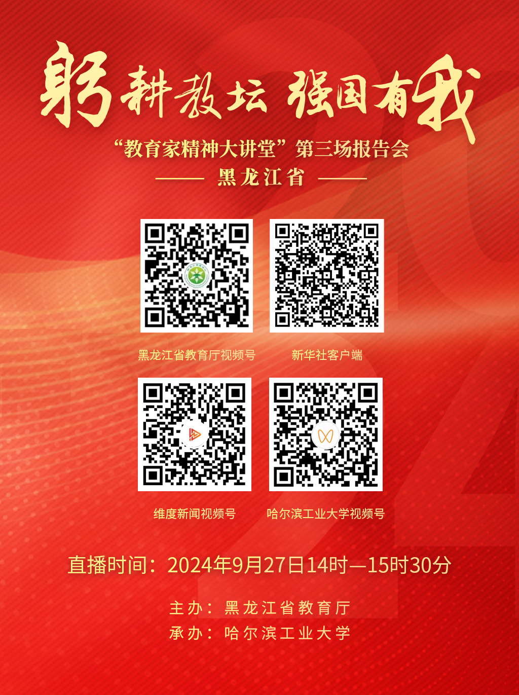 直播平台:黑龙江省教育厅视频号、新华社客户端、维度新闻视频号、哈尔滨工业大学视频号(请扫描或识别上方海报直播平台二维码观看)。