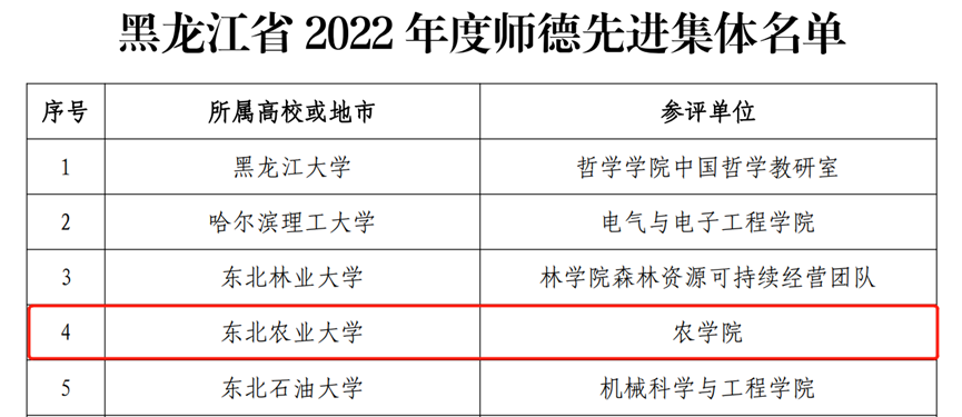 2022年度全省师德先进集体荣誉获得者——农学院