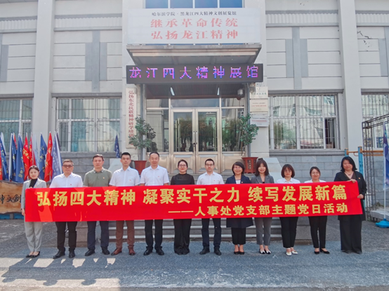 为深入开展学习贯彻习近平新时代中国特色社会主义思想主题教育活动,进一步加强对支部党员同志的思想淬炼、精神洗礼,积极凝聚起推动事业高质量发展的奋进力量,近日,人事处(党委教师工作部)党支部全体党员赴哈尔滨学院黑龙江“四大精神”文创展览馆,开展“弘扬四大精神,凝聚实干之力,续写发展新篇”主题党日活动。