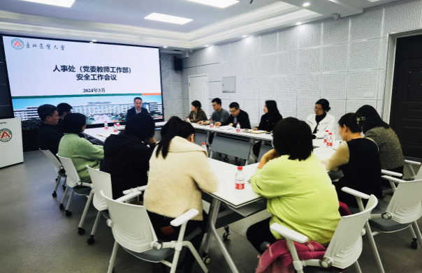 为贯彻落实学校安全工作总体要求,抓实做好安全稳定各项工作,进一步强化安全意识、提高安防能力、构建安全体系,3月26日下午,人事处(党委教师工作部)召开安全工作会议。人事处(党委教师工作部)全体工作人员参加会议,会议由处(部)长吴立全主持。