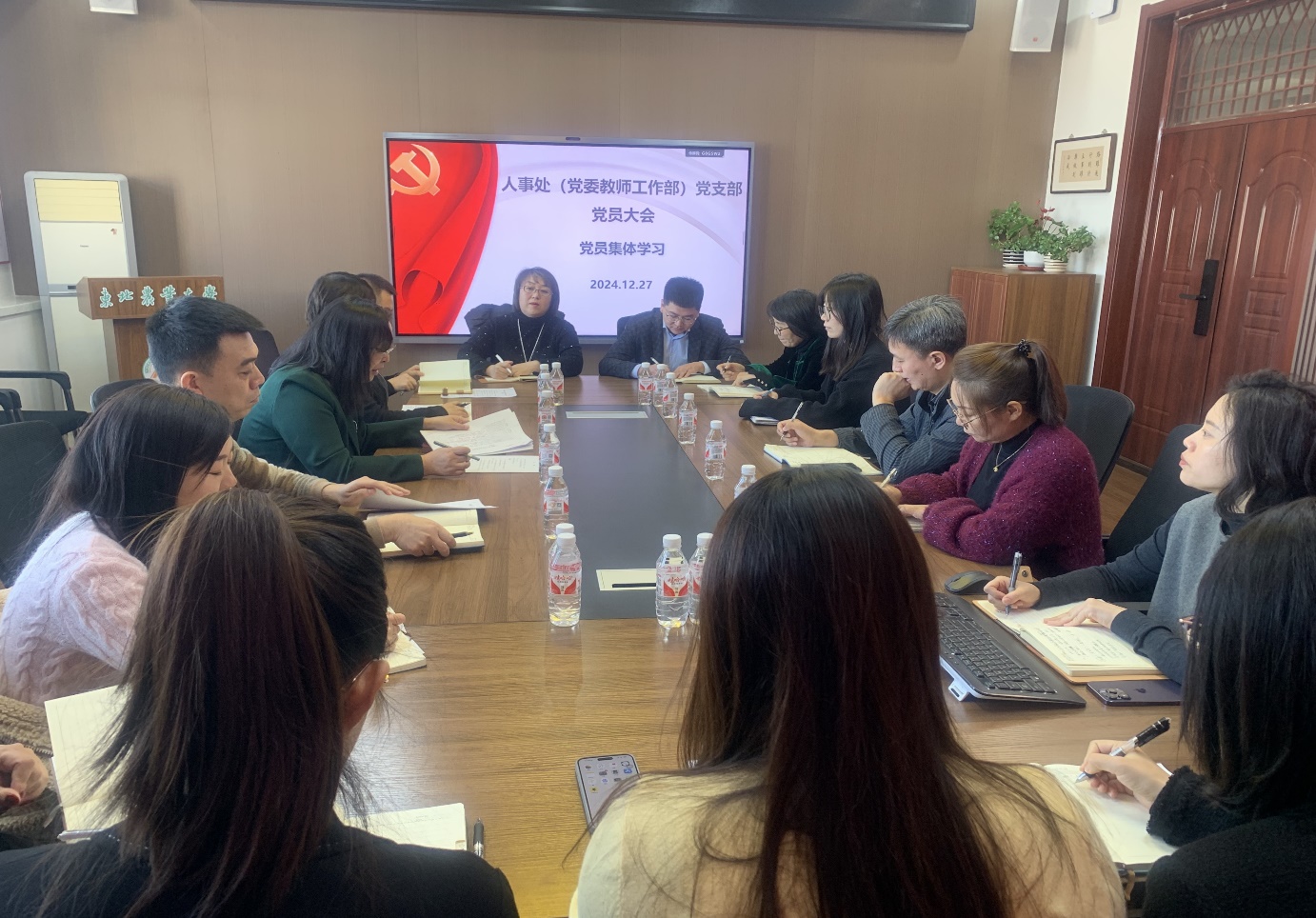 12月27日上午,人事处(党委教师工作部)党支部召开党支部集体学习会议,深入学习习近平总书记在中央经济工作会议上的重要讲话精神和关于人才工作的重要论述,党支部全体党员参加会议,会议由党支部书记吴春丽主持。