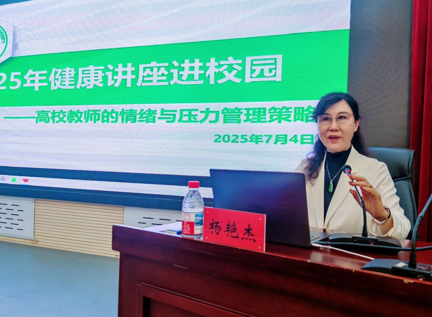 车可舒对杨艳杰的到来表示热烈欢迎。她强调,高校教师肩负着立德树人的重任,此次讲座旨在帮助教师科学应对压力,提升情绪管理能力,以更健康的心态投身教育事业。