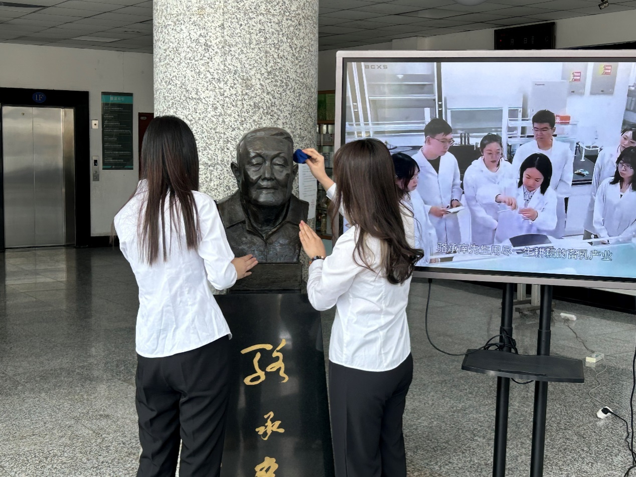 全体师生重温了骆承庠先生的生平事迹和突出贡献。骆承庠先生是我国现代畜产品加工科教事业的开拓者和奠基人,被誉为中国乳业泰斗,作为国际著名乳业专家,他坚守报国初心,终生投身于教育教学与科研实践之中。