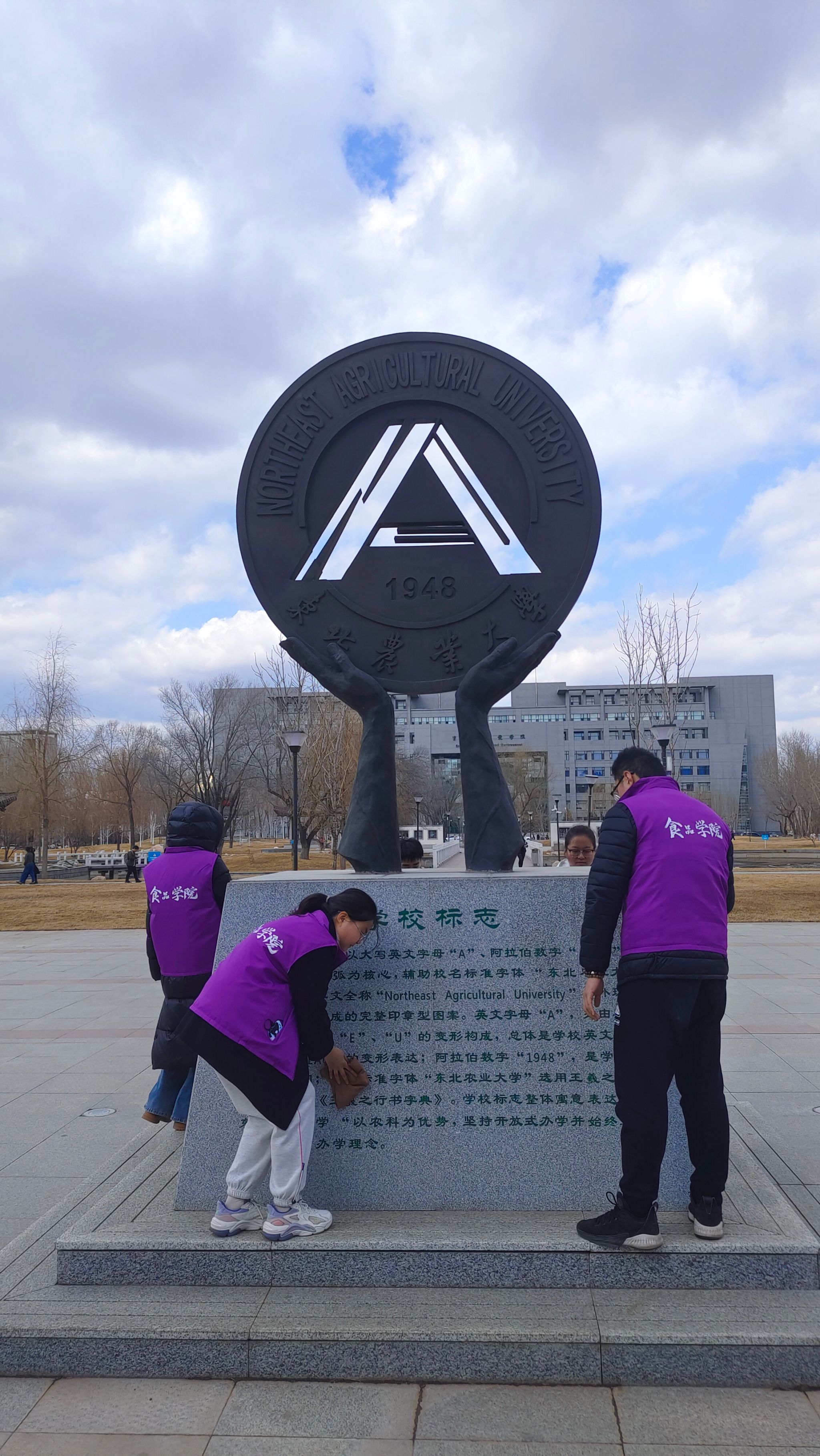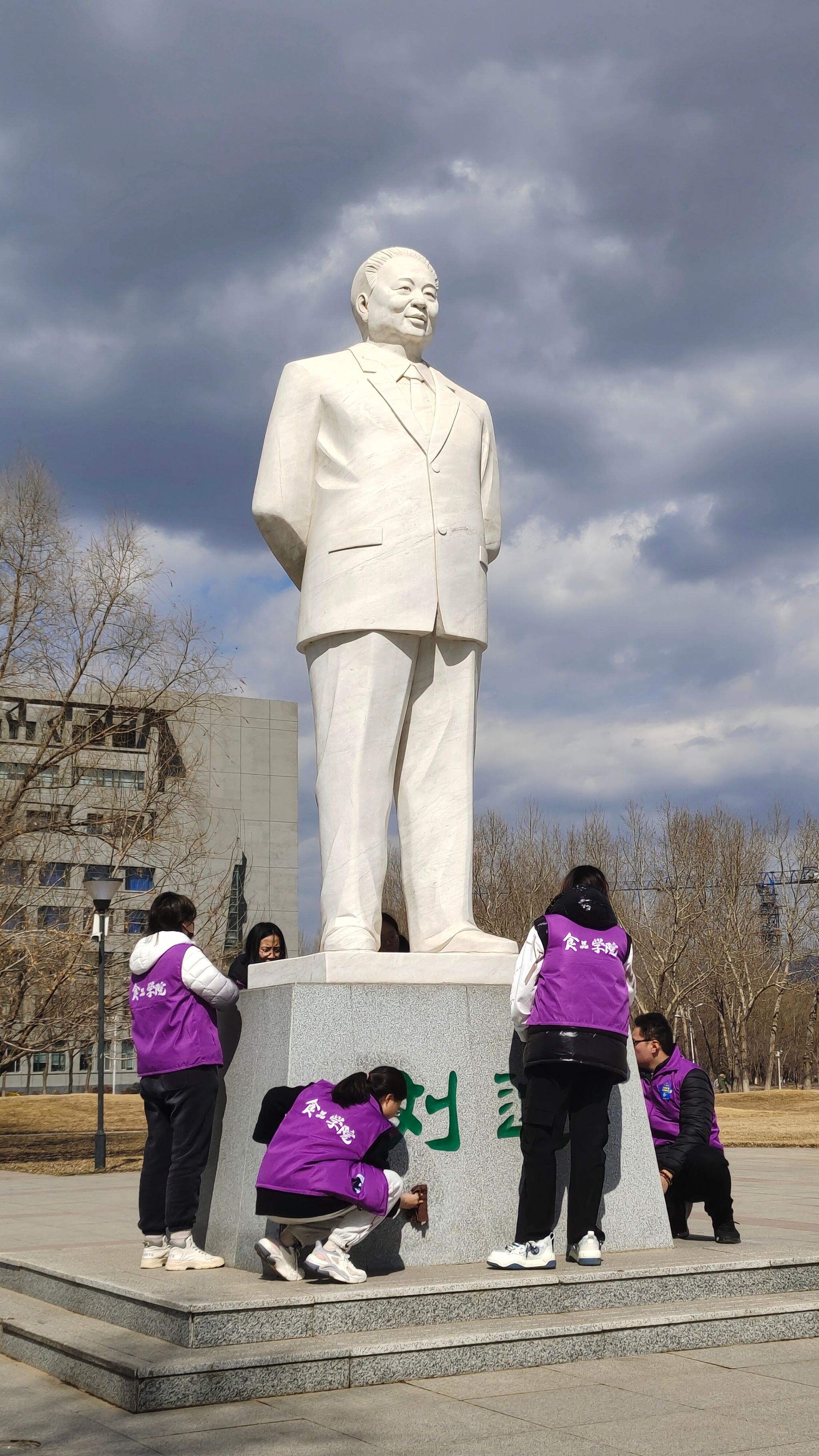 为增进学生对校史、校情了解,缅怀为学校发展贡献力量的先贤,引导学生厚植爱国主义情怀,勇担时代使命。4月3日,食品学院将“爱校如家 当好主人翁”“文明于心 洁净于行”校园清扫系列活动与清明祭扫相结合,组织青年志愿者在后稷园开展清洁校训、校风文化、雕塑等志愿服务活动。组织学院青年志愿者服务站宣讲员对学校历史、发展沿革及刘达校长等老一辈科学家们的英雄事迹进行讲解,共有50余名同学参与本次活动。