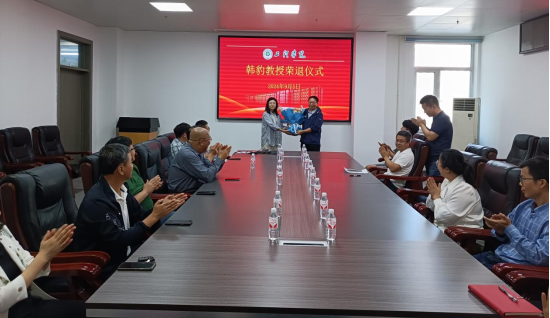 黄步海充分肯定了韩豹教授在岗期间所取得的业绩。他表示,韩豹教授几十年如一日,始终以教师职业为荣,以教育事业为重,爱岗敬业、无私奉献,是学院发展的见证者、参与者和贡献者,在人才培养、科学研究等方面作出了很大贡献,是全院教职工特别是青年教师学习的楷模。