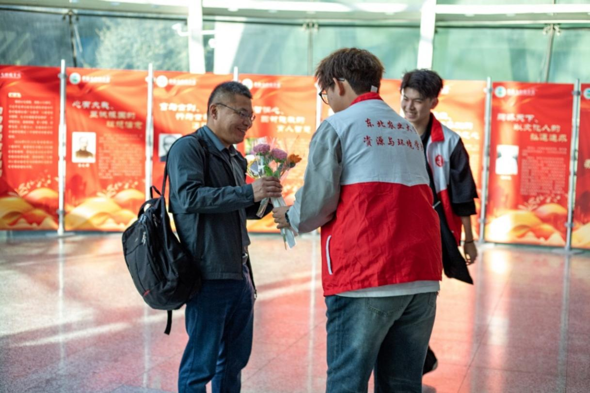 9月10日上午,学院精心组织“感恩吾师,为你献花”活动。学生们提早守在研楼大厅,为老师献上了独一无二的手工花,以表师恩之情。