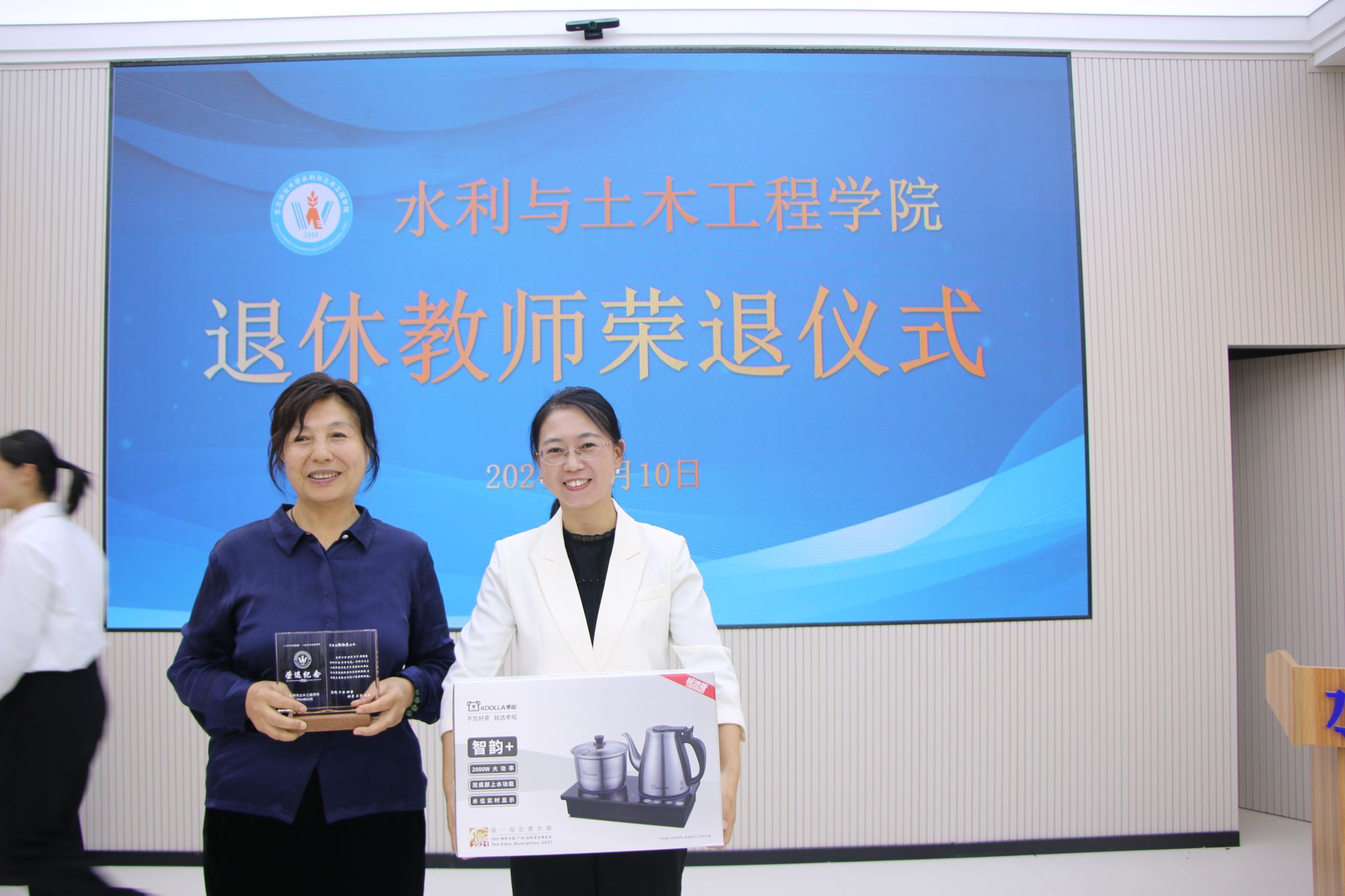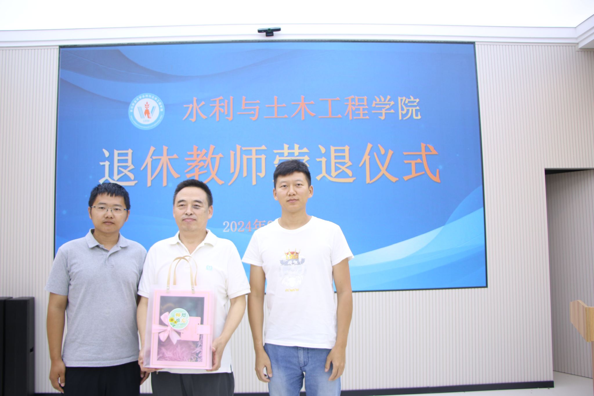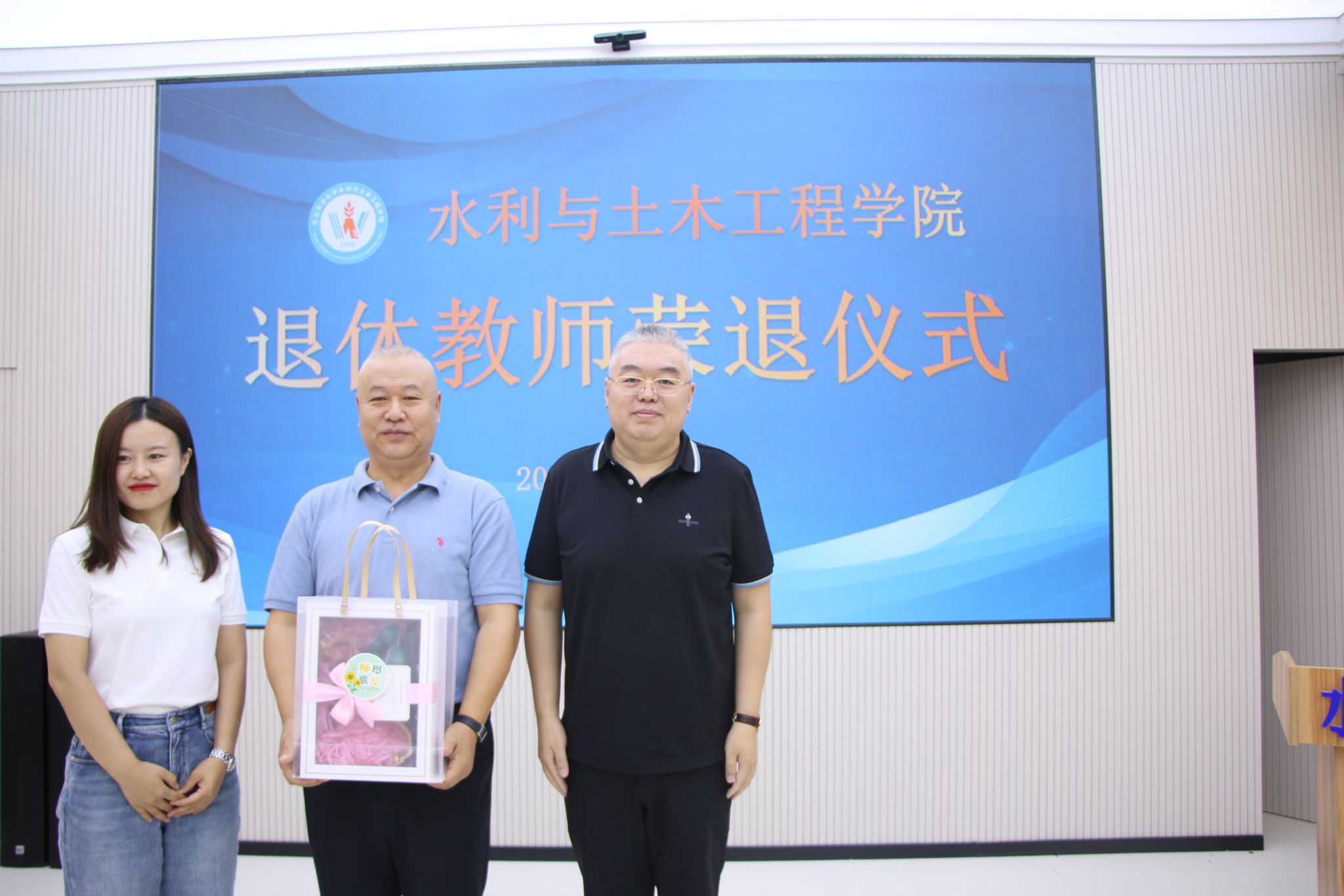院长李茉在讲话中简要回顾了三位荣退教师的工作历程,对三位教师的辛勤耕耘以及为学院发展壮大所作出的贡献表示感谢和敬意。她表示,三位退休教师是学院发展的见证者、参与者和贡献者,在人才培养、科学研究、管理服务、学科专业建设等方面作出了突出贡献,是全院教职工特别是青年教师学习的楷模。李茉强调,要号召全院青年教师以他们为榜样,握紧老一辈水利人立德树人的“接力棒”,勇挑重担,加速成长。希望三位教师退休后能够开启更加精彩的人生新篇章,更多的陪伴家人、享受生活。同时,也希望三位老师能够继续在自己擅长的领域发光发热,为学院发展建设助力添彩、建言献策。