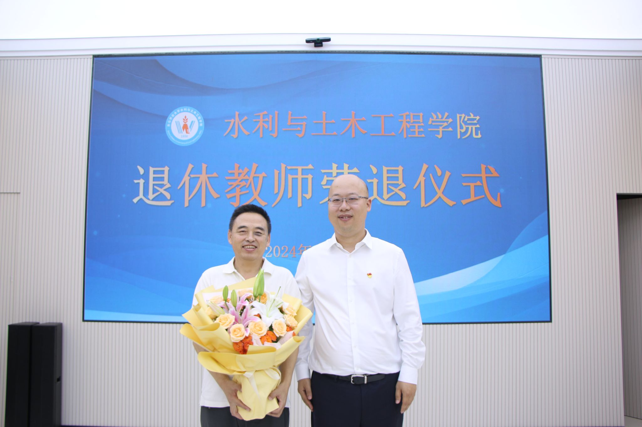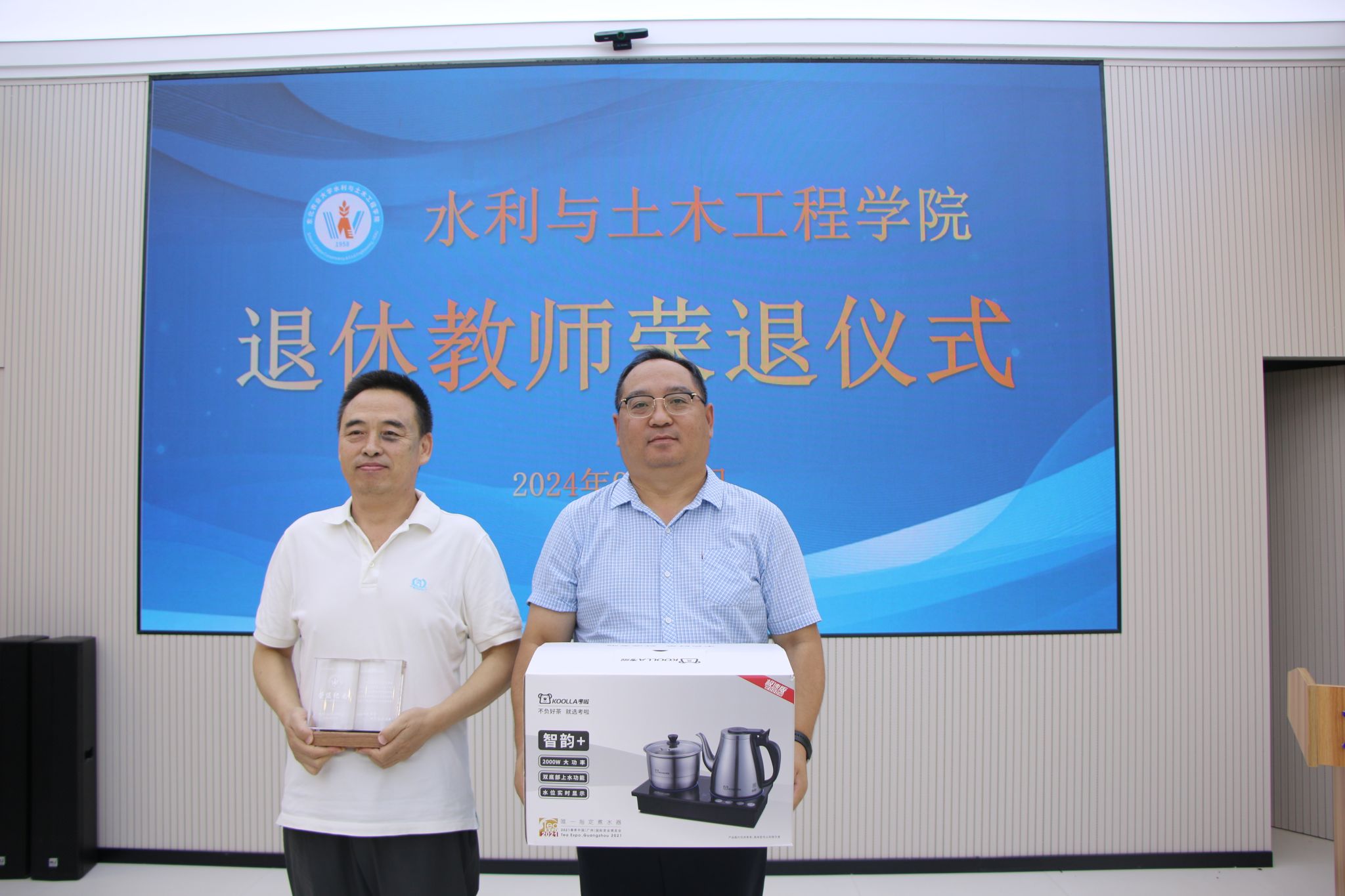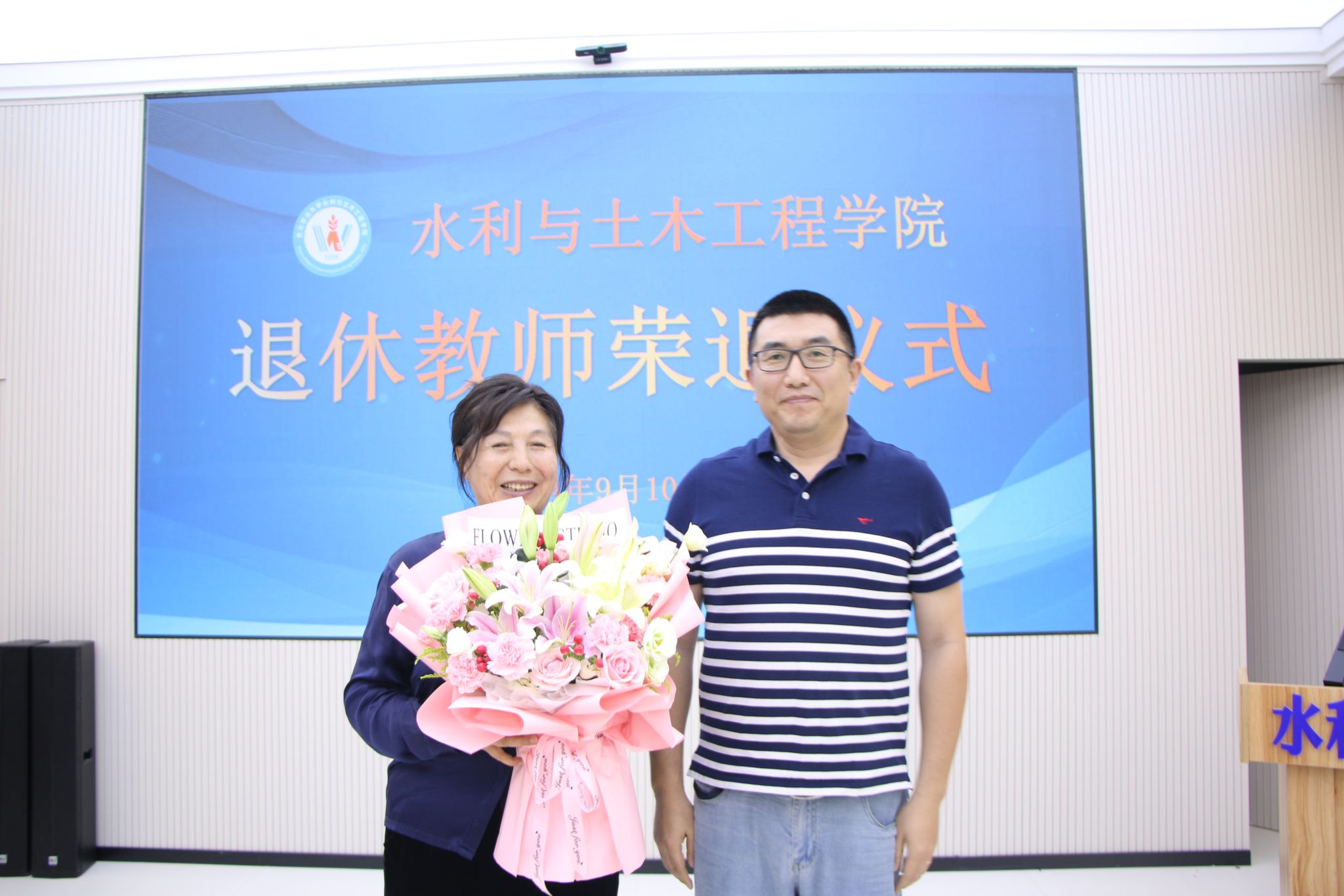 院长李茉在讲话中简要回顾了三位荣退教师的工作历程,对三位教师的辛勤耕耘以及为学院发展壮大所作出的贡献表示感谢和敬意。她表示,三位退休教师是学院发展的见证者、参与者和贡献者,在人才培养、科学研究、管理服务、学科专业建设等方面作出了突出贡献,是全院教职工特别是青年教师学习的楷模。李茉强调,要号召全院青年教师以他们为榜样,握紧老一辈水利人立德树人的“接力棒”,勇挑重担,加速成长。希望三位教师退休后能够开启更加精彩的人生新篇章,更多的陪伴家人、享受生活。同时,也希望三位老师能够继续在自己擅长的领域发光发热,为学院发展建设助力添彩、建言献策。