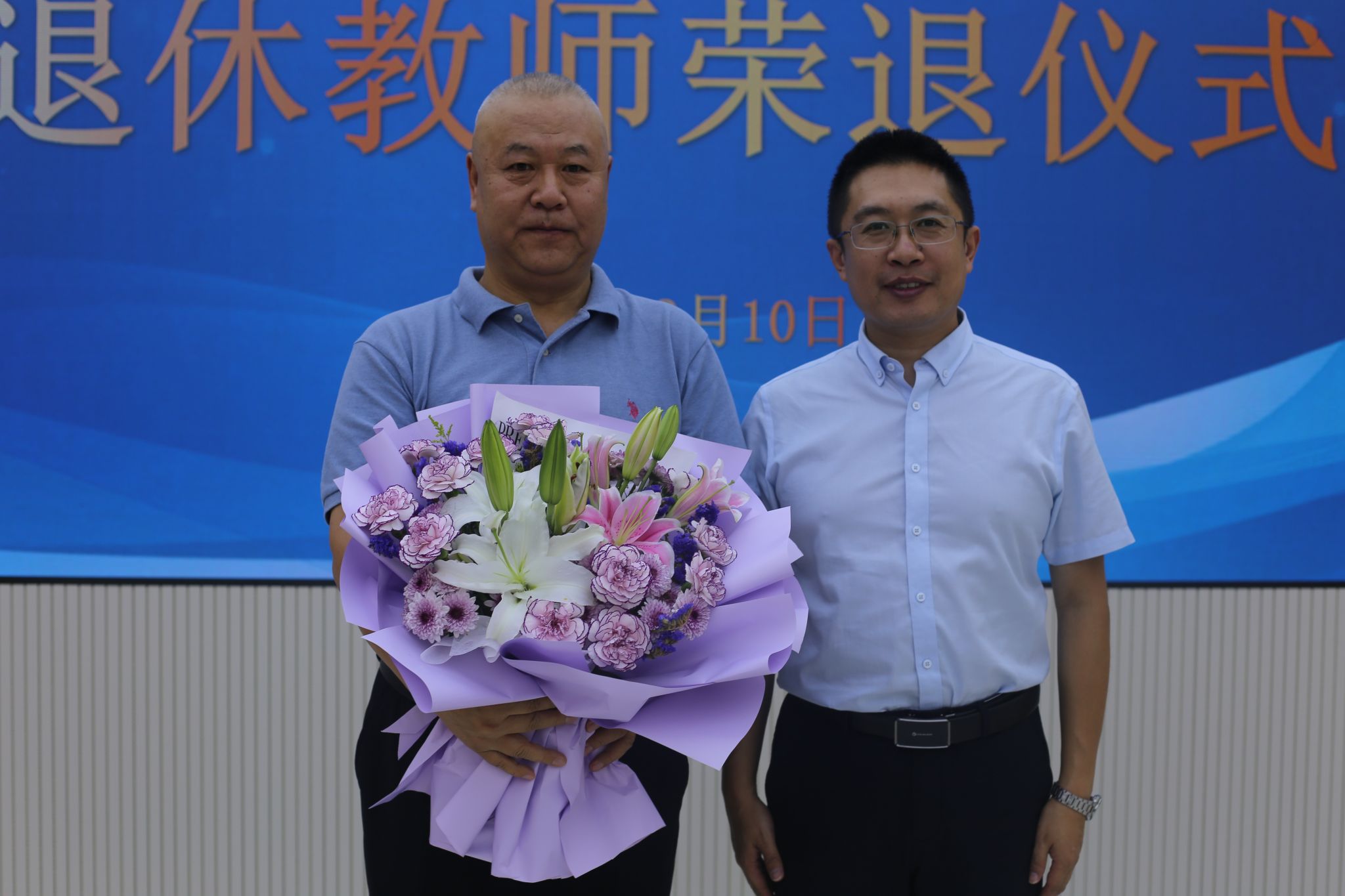 为荣退教师颁发纪念奖章、退休礼物、献花