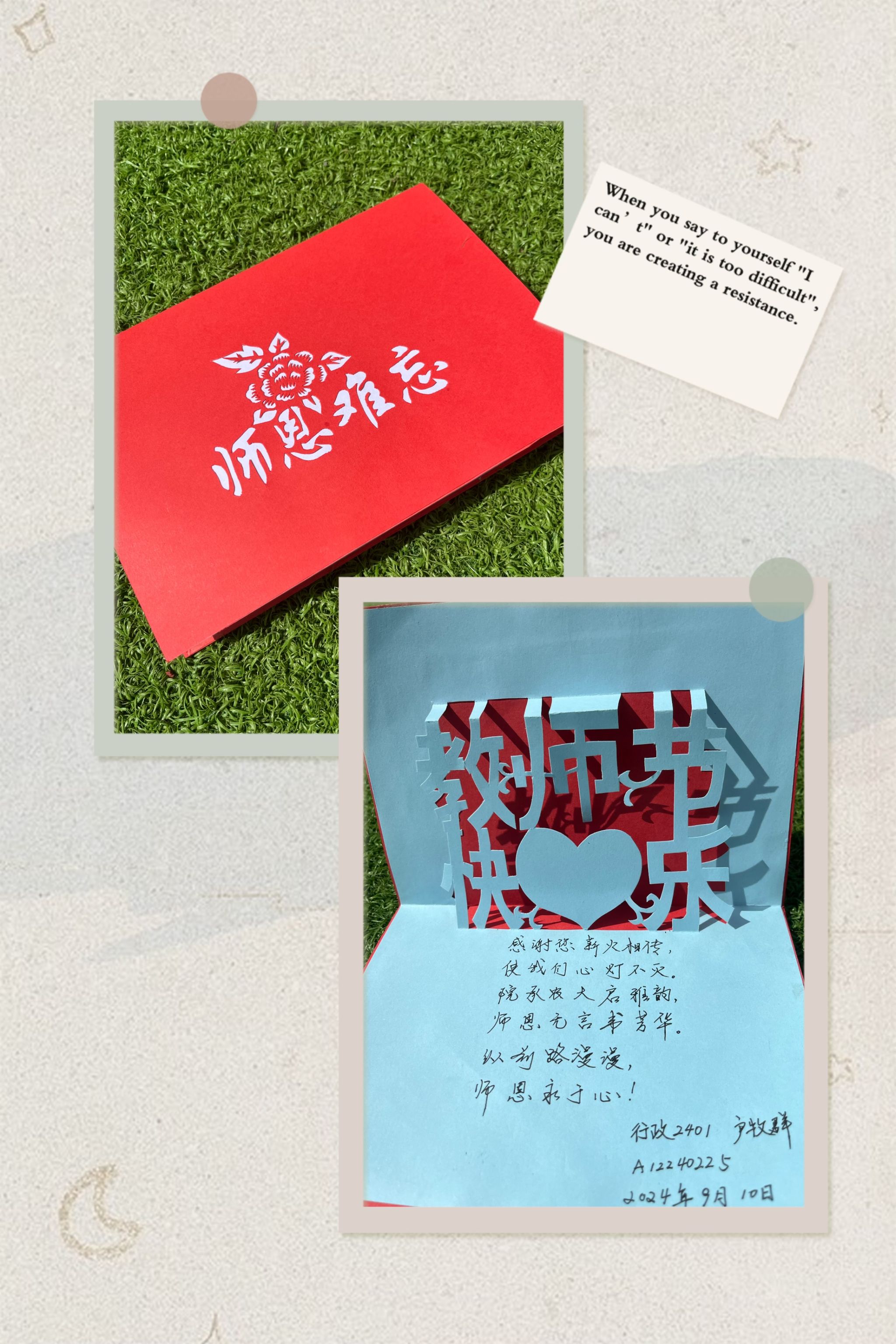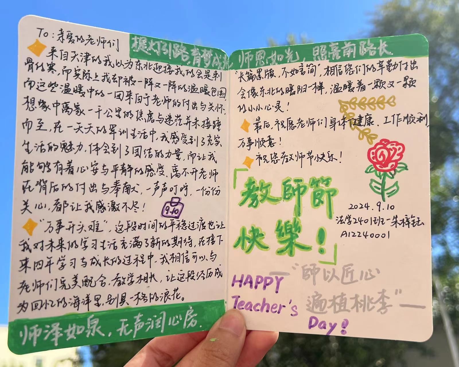 为表达对老师的感恩之情,学院举办“心语谢师恩,礼颂引路人”手写贺卡征集活动。管法学子通过自己的方式向老师深情告白,为老师送上诚挚的节日祝福。