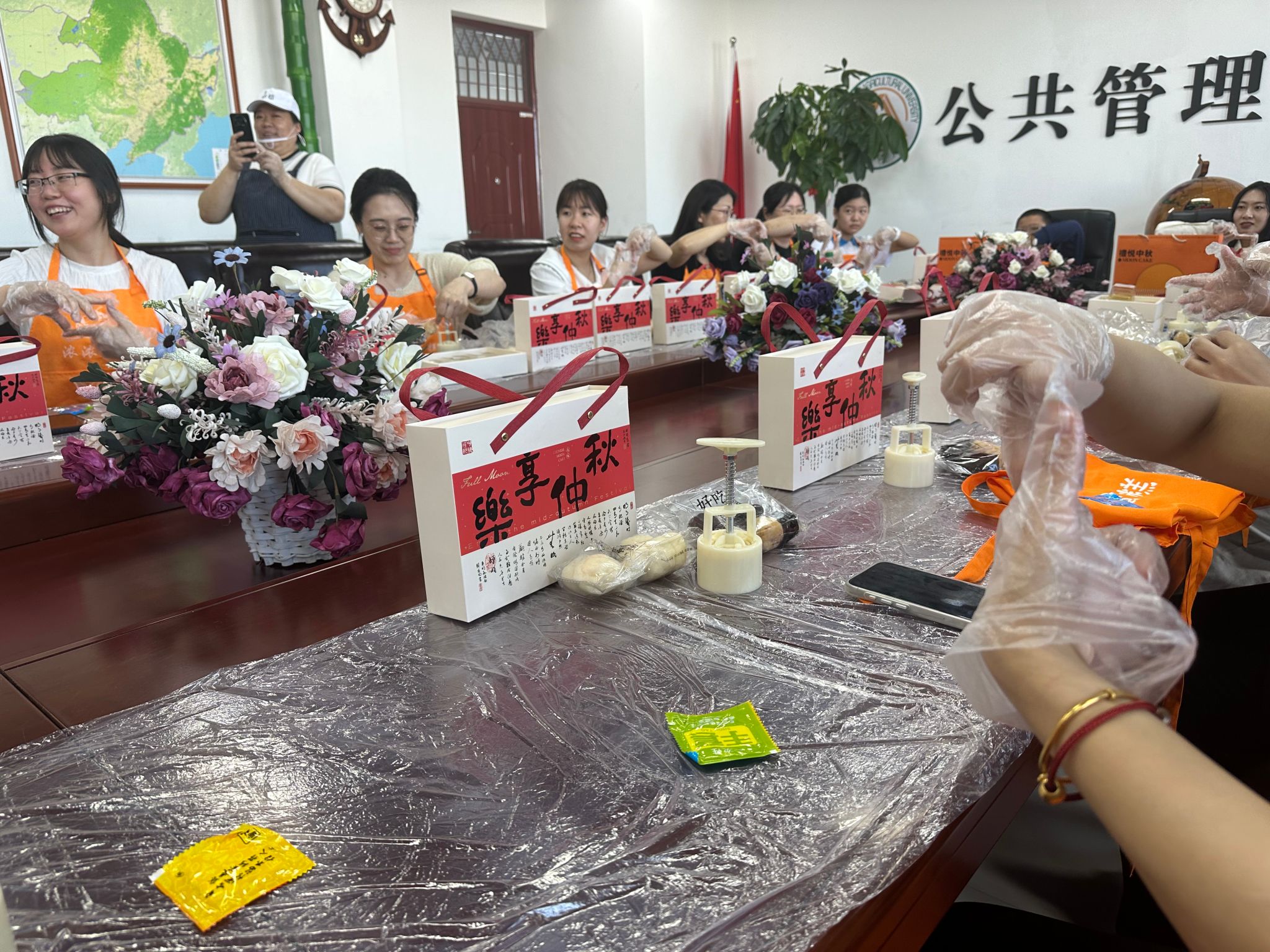 学院为全体教职工举办了冰皮月饼创意制作活动。大家分工合作、齐心协力,亲手制作月饼,寓意“圆圆满满”,在欢声笑语中,本次冰皮月饼创意制作活动圆满结束。
