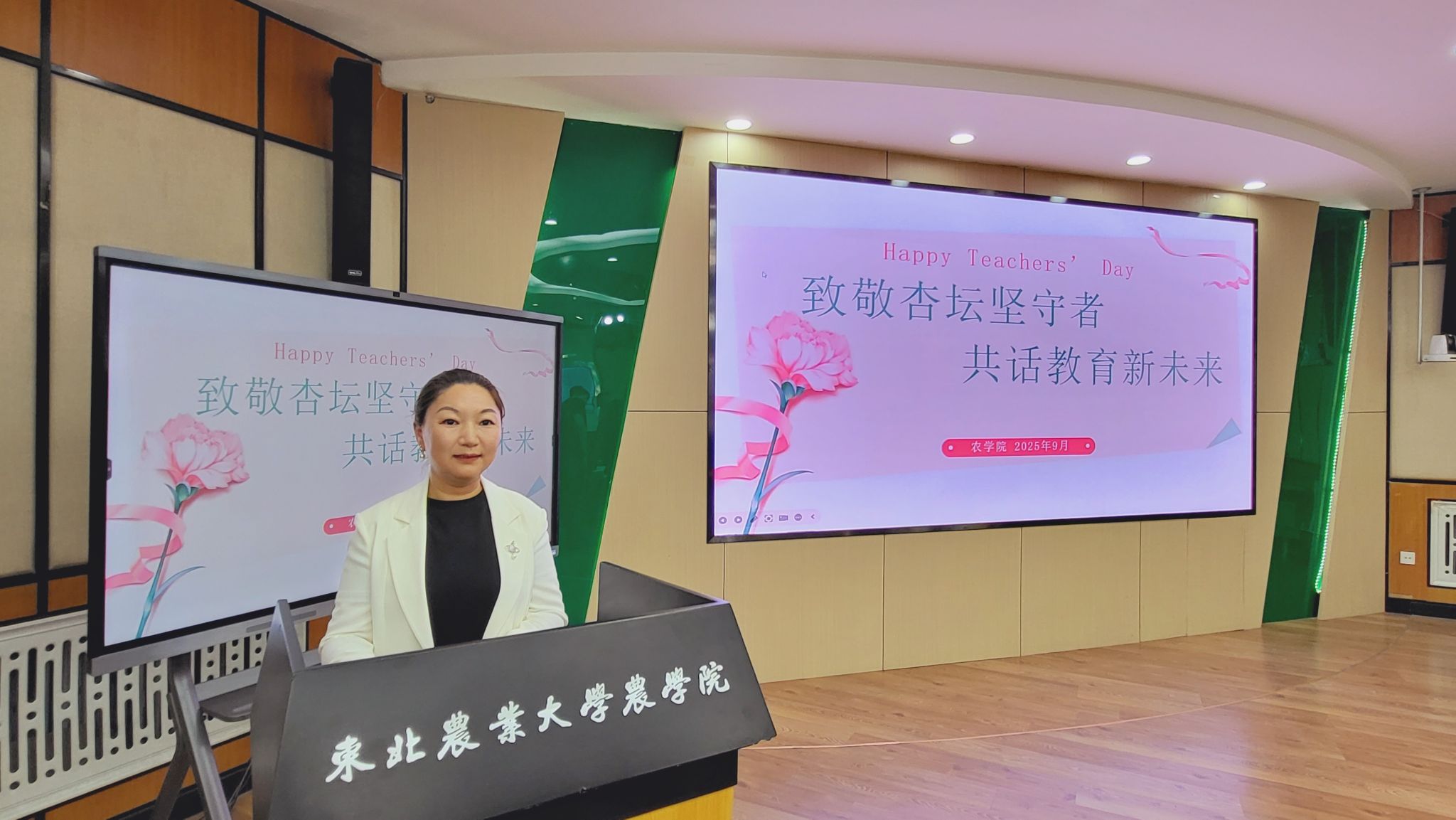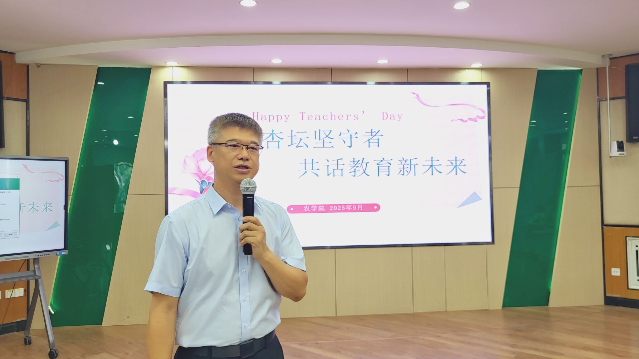 9月9日下午,第41个教师节来临之际,农学院开展“致敬杏坛坚守者,共话教育新未来”献花活动,活动由学院工会主席张华英主持。