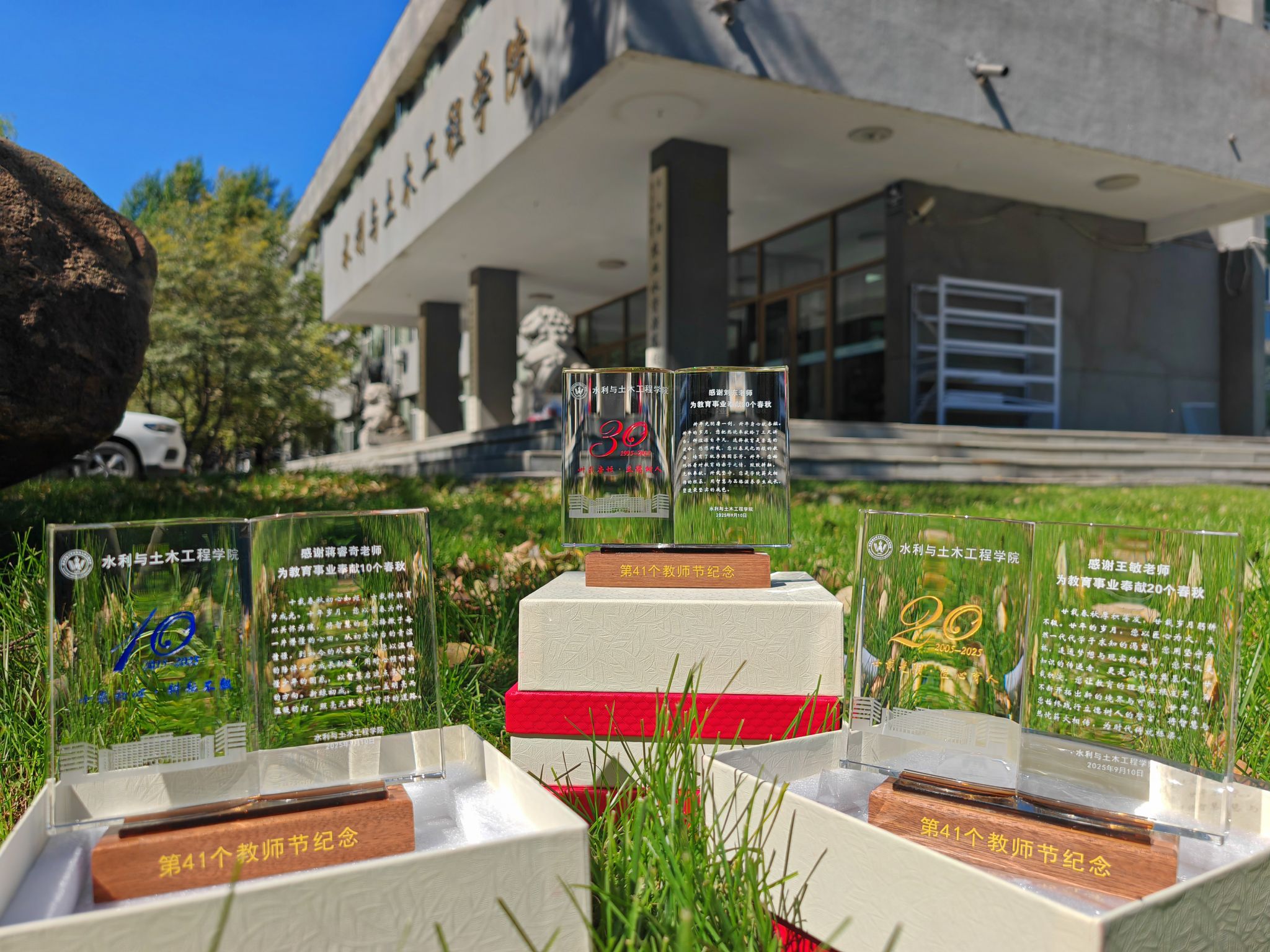 9月10日下午,学院在水利楼208会议室为从教满10年、20年和30年的教师举行教龄纪念奖杯颁发仪式。学院领导班子出席,并向各位教师颁发了精心定制的教龄纪念奖杯。