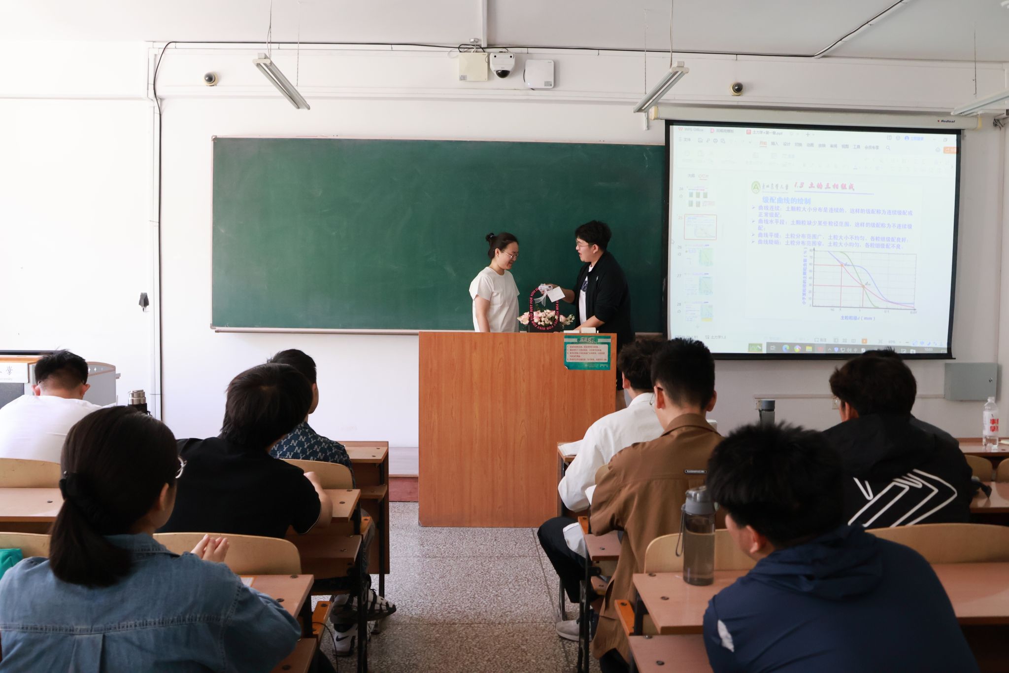 教师节当天,学院工会提前为有课教师备好了鲜花。课前,学生代表向老师献上花束,全体学生起立齐声祝福:“老师,教师节快乐!”一束鲜花、一声问候,传递出学子对老师辛勤付出的由衷感谢,也让老师们倍感温暖与光荣。