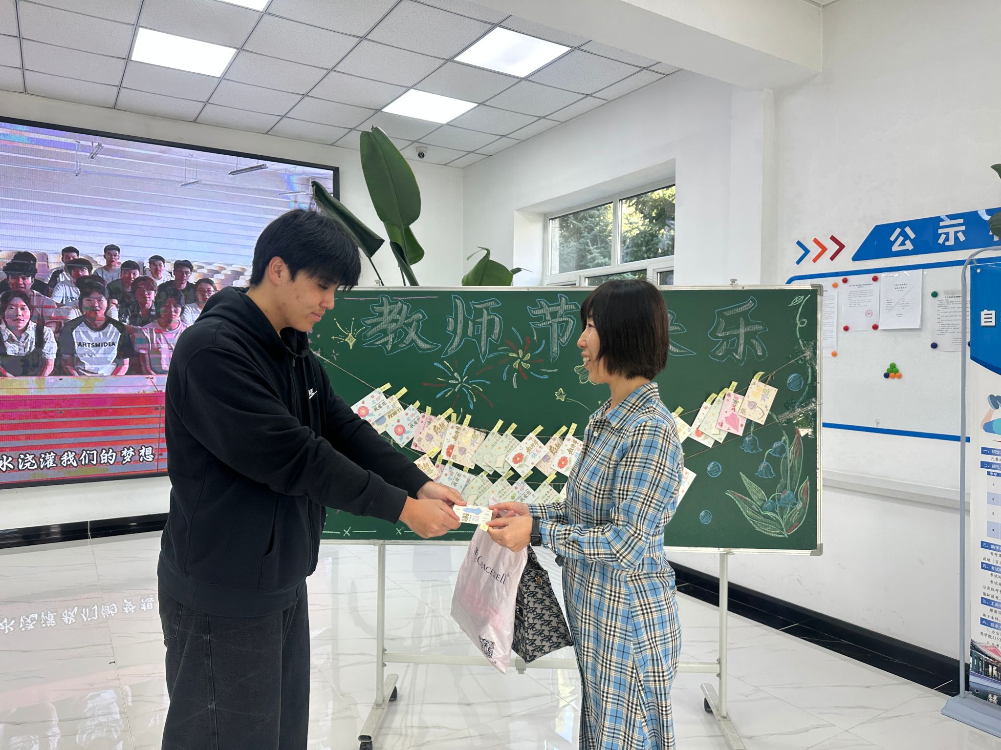教师节当天,学院团委与学生代表一同将信件与贺卡送至老师手中。老师们认真阅读、深受感动。学生的理解和认可,成为他们最好的节日礼物。此次活动不仅为师生情感交流搭建了温馨桥梁,也让感恩之心化为实际行动,进一步弘扬了尊师重教的良好风尚。